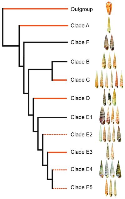 The Tererbridae (auger snails) are a family of globally distributed predatory marine snails that use venom to subdue their prey. The >400 described terebrid species are highly representative of a broad range of feeding strategies, more so than any other venomous marine taxa. We describe the taxonomy, phylogeny, and venom diversity of terebrid snails. Our results produced the first molecular phylogeny of the Terebridae and used it to identify terebrid lineages that used a venom apparatus similar to cone snails to produce bioactive venom peptides (teretoxins). The correlation between phylogeny and anatomical analyses is a road map for studying terebrid snails and their venom peptides. We are using terebrid taxonomy and teretoxins to clarify conoidean venom evolution.